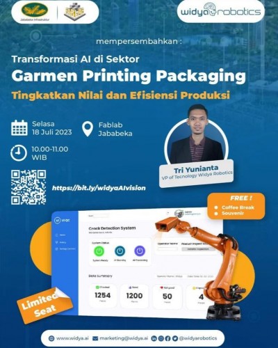 Artificial Intelligence Garment Printing Fablab Jababeka Seminar | 18 Jul 2023 | 01 jam 00 menit |